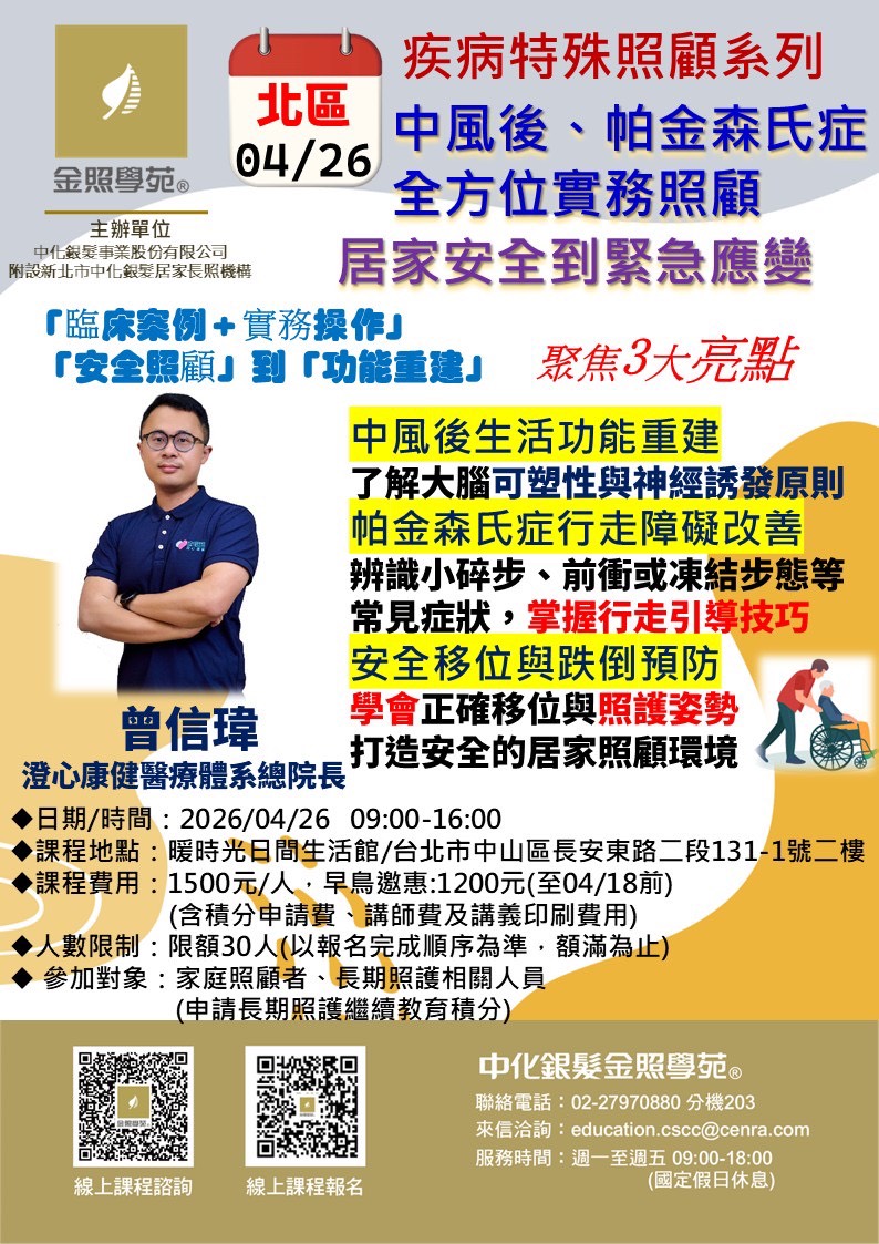 協助您建立一個更安心的照護空間。透過案例分享與實際操作練習,